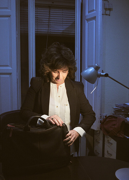 Cubero tiene 52 años y comparte un bajo sobrio y funcional situado en pleno barrio de Chamberí con varios colegas. Ella se ocupa de asuntos penales y matrimoniales. “No compartimos el trabajo en sí, pero nos funciona bien esta fórmula y ahorramos costes”, dice. Lleva 26 años en el turno nocturno y admite que no es para todo el mundo. “Son días complicados porque te llaman, vas a la comisaría, vuelves, duermes y al rato te llaman otra vez. Como un médico”, compara.