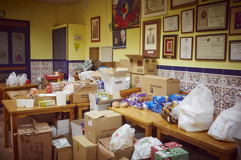 Los desayunos se componen de un zumo, un bollo y un sándwich. Muchos de estos alimentos son donaciones de empresas y restaurantes. Un chico llega con unos paninis y otros dos con cajas de fruta. Al día se reparten unas 120 bolsas. “El récord está en 150”, señala Manuel.