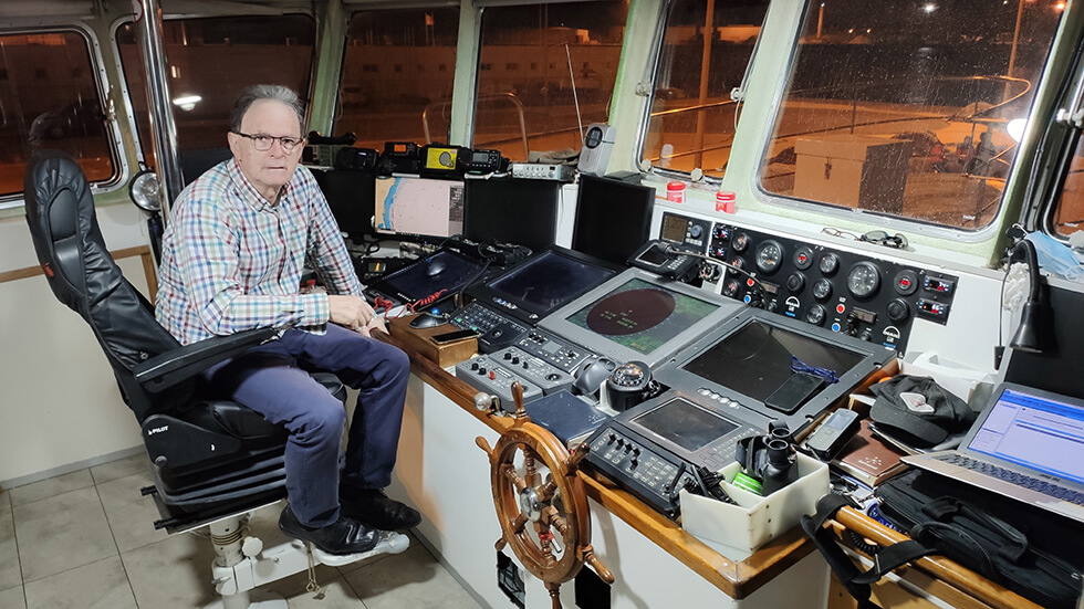 Joseba Arego tiene 59 años y es patrón de pesca del cerquero Nuevo Atxarre. Faena en la oscuridad desde hace 43 años. Fundó la flota Pesqueros Hermanos Arego junto a sus dos hermanos y se dedica a la pesca con cerco del boquerón y la sardina en las costas de Castellón. Alrededor de las 21:00 llega al puerto para embarcar y navega 15, 25 o 40 millas mar adentro hasta los caladeros. Allí atraen a los cardúmenes con luz o sónares. “Cada noche es una aventura. No sabemos cuánto pescaremos cada día. Te tiene que gustar”, reflexiona Arego. Suele llevarse la cena al barco y los días tranquilos duerme unas horas a bordo mientras le releva algún compañero. A las 8:00 la jornada toca a su fin y Arego llega a casa sobre las 11:00. Calcula que en el mar está unas 10, 12 horas al día. Come sobre las 13:00 y después se acuesta hasta que cae la noche. De domingo a jueves es su rutina.