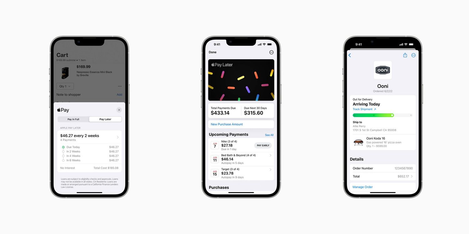 Apple Pay Later permite dividir cualquier compra en cuatro pagos iguales durante seis semanas. Cuando un usuario realiza el pago mediante Apple Pay, habrá una opción para “Paga después” con el tiempo. Aunque seguramente beneficiará a los clientes de Apple Store, Apple Pay Later se puede usar en cualquier momento en que se acepte Apple Pay en aplicaciones o en línea. Una característica relacionada de Apple Pay Later que se rumorea son las cuotas mensuales de Apple Pay, que permite que las compras de Apple Store sean pagado mensualmente sin registrarse en Apple Card.