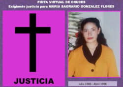 Se trataba de una pinta virtual de cruces por María Sagrario González Flores, desaparecida y asesinada a los 17 años. Ese 16 de abril se cumplían 22 años de impunidad.