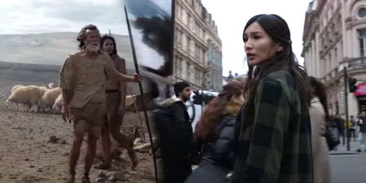 Hablando a Vanity Fair Italia, Gemma Chan dijo que Eternos es “la historia de un grupo de extraterrestres inmortales, que llegaron a la Tierra hace 7.000 años, por lo que la trama se desarrolla durante un período de tiempo muy largo.“Se ha dicho que el auge de la agricultura en la vida real ocurrió hace entre 7.000 y 10.000 años, sin un solo lugar de origen definido. Los primeros humanos representados en el tráiler ya domesticaron ovejas, por lo que el escenario del 5.000 a. , Eternos proporcionará explicaciones ficticias pero concretas para muchos de los eventos históricos esenciales de la humanidad.
