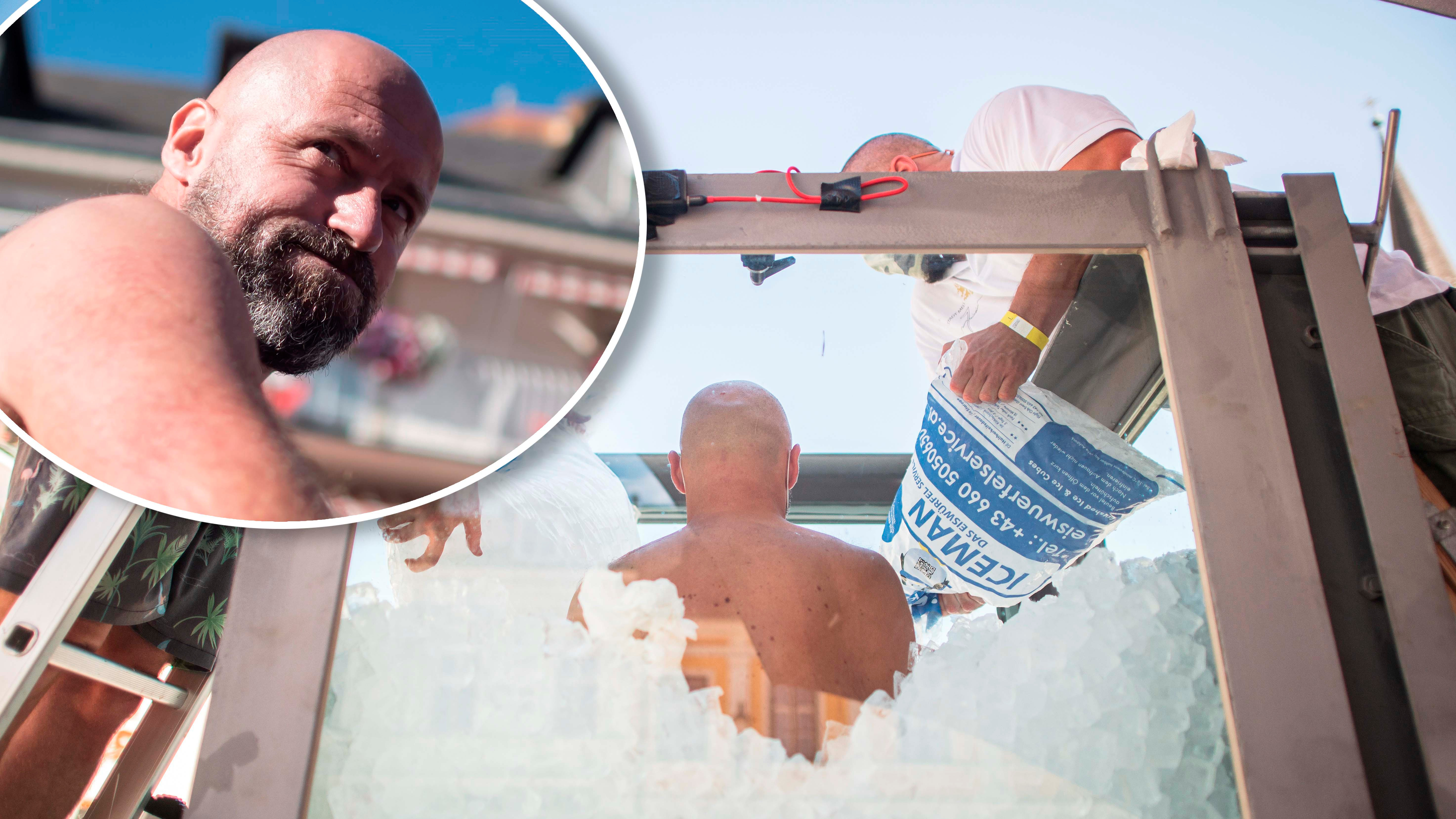Köberl sabía que podía aguantar más, así que el año pasado organizó un evento frente a la estación central de Viena y estuvo 2 horas, 8 minutos y 47 segundos encerrado en una cabina de plástico, cubierto de hielo, y con médicos monitorizando su estado de salud en cada momento.