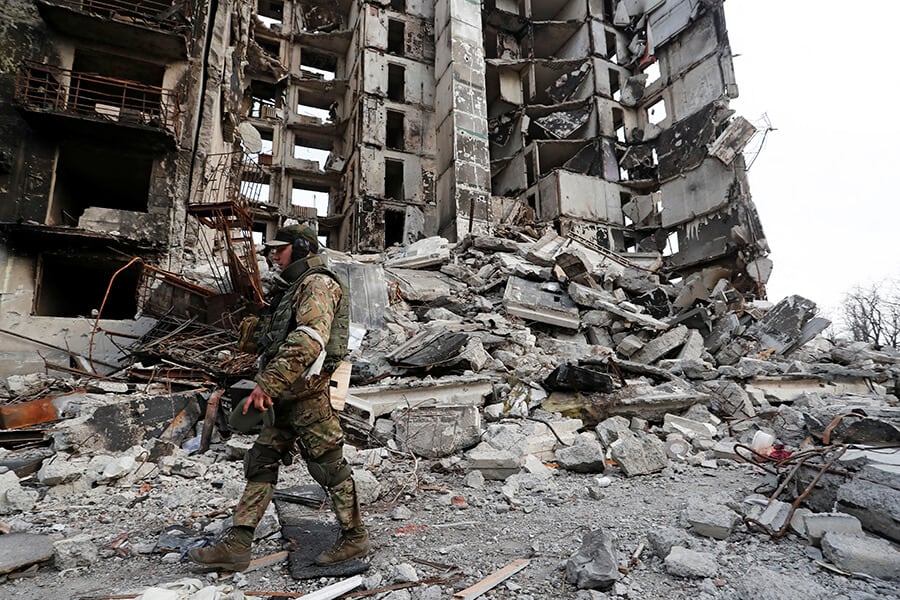 Un soldado prorruso camina entre las ruinas de un edificio residencial el 30 de marzo. Alexander Ermochenko (Reuters).