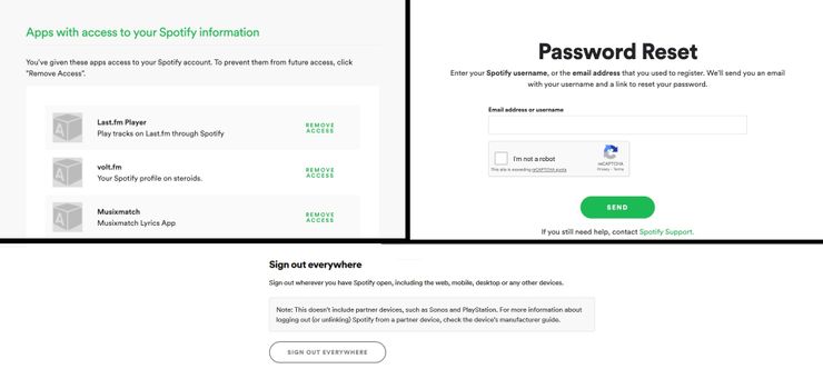 Como cualquier otro servicio, una cuenta de Spotify es un buen objetivo para piratas informáticos e intrusos. Esto se debe a que algunos utilizan la suscripción activa para disfrutar de Spotify Premium sin pagar. Además de esto, algunos piratas informáticos pueden cambiar la información de la cuenta y revenderla a bajo precio. Hay señales obvias de que algunos intrusos están accediendo a la cuenta, incluido el cambio de contraseñas o direcciones de correo electrónico, cambios en las listas de reproducción y las pistas reproducidas recientemente, o darse cuenta de que alguien está controlando la música desde otro dispositivo.