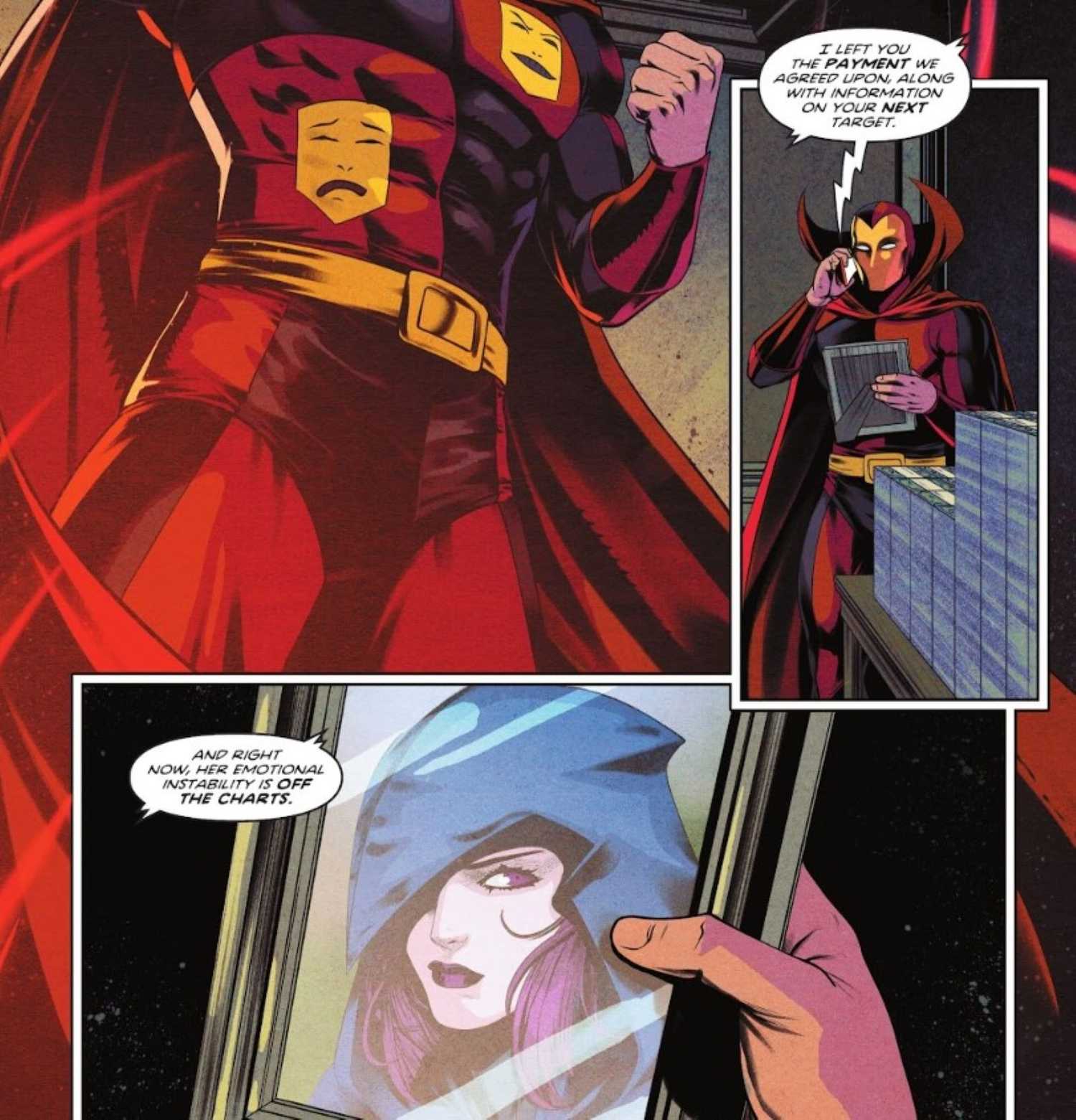 Durante su llamada telefónica, Deathstroke hace una revelación inquietante: El próximo objetivo de Psycho-Pirate no es otro que Raven. Como se reveló en números anteriores y Titanes #19, Raven ya está luchando con sus habilidades empáticas después de fusionarse con su mitad más oscura, la Reina de Alas Oscuras. Con Raven más inestable y vulnerable que nunca, y como uno de los miembros principales y más poderosos de los Titanes, su conversión en el próximo objetivo de Psycho-Pirate es profundamente preocupante. No hay duda de que si esto liga de la justicia El supervillano manipula con éxito Cuervo emociones, el Titanes se enfrentará a una posible catástrofe.