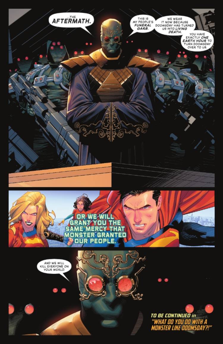 Mientras Doomsday permanece inactivo debido al veneno de Black Mercy, una coalición alienígena llega a la Tierra y se hace llamar Aftermath. Exigen que se les entregue Doomsday, y su llegada podría ser la mejor oportunidad para que Superman finalmente se deshaga de él.