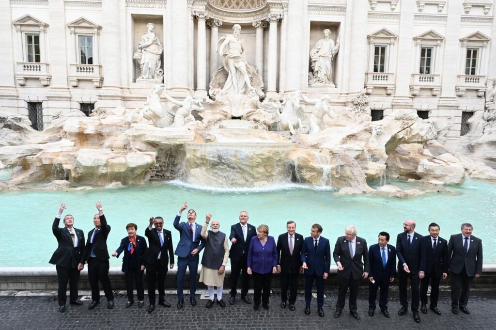 En el capítulo de gente que piensa cosas extraordinarias para Twitter también destacó la cumbre monetaria de la Fontana de Trevi. Los 20 líderes mundiales acudieron la mañana del domingo al monumento de Roma como si fuera la típica excursión de viaje de fin de curso de segundo de bachillerato. Los mandamases planetarios se colocaron para una foto grupal: ahí estaba Pedro Sánchez, Angela Merkel, Boris Johnson… A los asesores de comunicación se les ocurrió que tiraran una moneda hacia atrás para cumplir con la típica tradición romana.