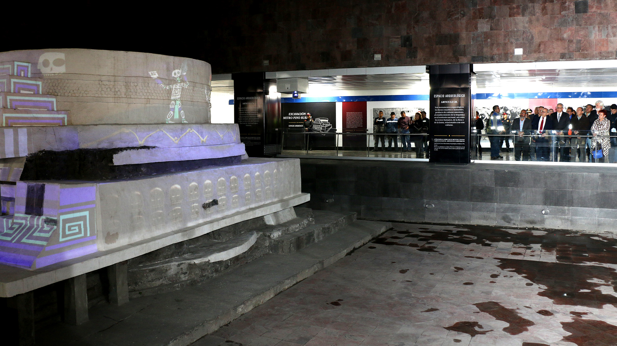Entre los hallazgos que se han realizado debajo de la tierra se encuentran un cráneo de mamut de 11 mil años de antigüedad, que ahora se exhibe en la estación de Talismán, así como una pirámide circular dedicada a Ehécatl, el dios azteca del viento, alrededor del cual se construyó la estación de Pino Suárez; y en 2010, una tumba azteca de 500 años de antigüedad.