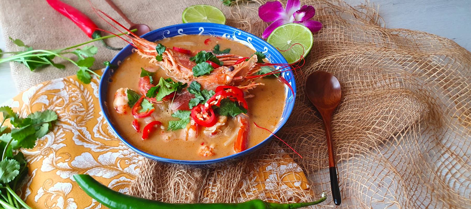 El laksa lleva leche de coco (Tailandia), lemongrass (Vietnam), cúrcuma, cilantro y comino (curry base de la India) y en este caso hasta un sofrito ibérico que nos hemos marcado para dar nuestro toque personal. La gracia y clave del éxito para hacer un buen curry es, además de hacerlo del gusto de cada uno, encontrar la proporción perfecta de dulce, ácido y picante.