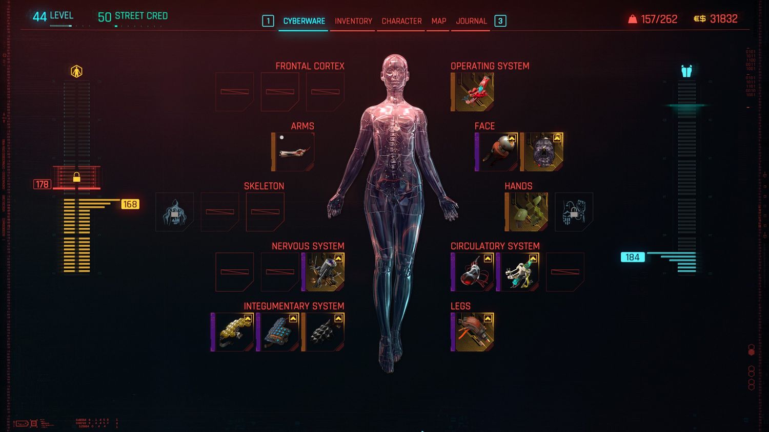 Los sistemas Cyberware del juego recibieron una revisión como parte de Cyberpunk 2077 Actualización 2.0, por lo que cada pieza de Cyberware ahora ocupa parte de la capacidad de Cyberware de V. De hecho, evita que los jugadores conecten tecnología en cada ranura Cyberware del cuerpo de V a la vez, creando una sensación de progresión constante hacia implantes de alta calidad. Sin embargo, necesitarás aumentar el límite desbloquear ventajas, subir de nivel y usar fragmentos.