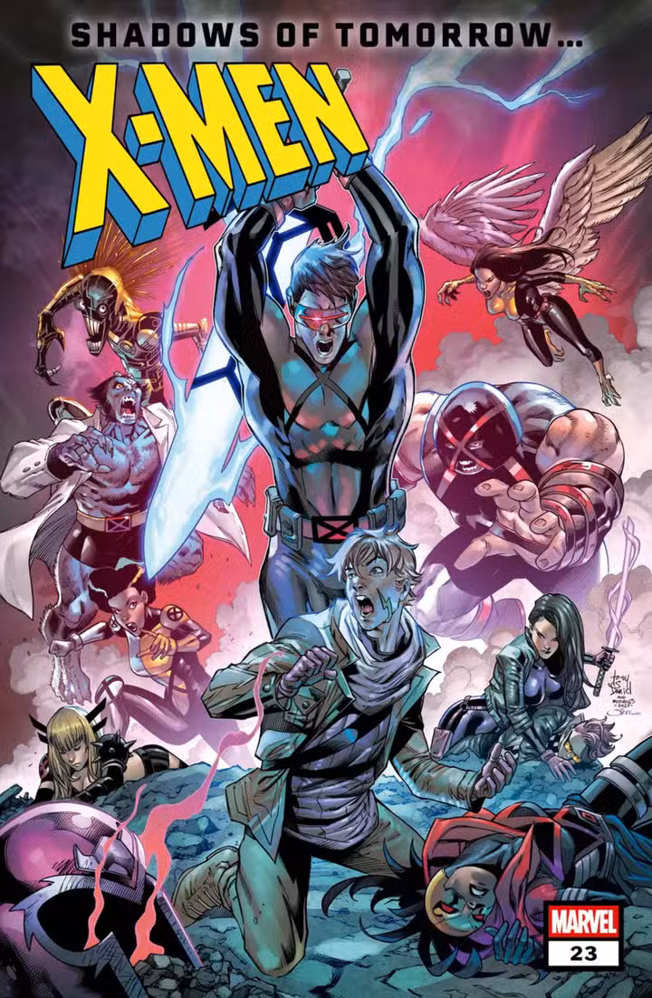 Ahora, Marvel ha revelado la información solicitada para X-Men #23revelando que si bien el Scott actual estaba en el futuro, el futuro Scott surgió en la actualidad. La portada de Tony S. Daniel muestra a Cyclops atacando a Doug con la Soulsword de Magik, con el casco humeante de Magneto sugiriendo que Scott ha atacado, y tal vez incluso matado, a su propio equipo para poner fin a la amenaza de la ascensión de Revelation.