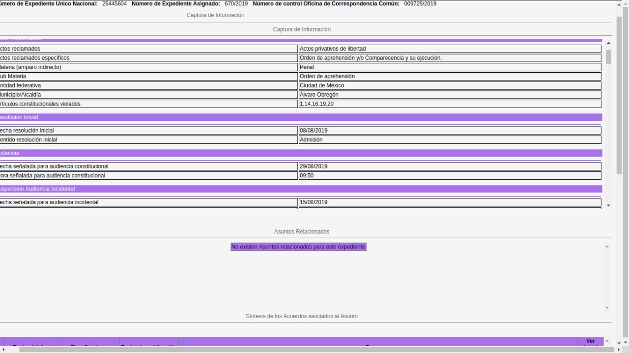 El Juzgado Sexto de Distrito de Amparo en Material Penal en la Ciudad de México concedió la suspensión e impuso una garantía de 100 mil pesos, para que tenga efecto la misma, y precisó que la determinación no constituye la concesión del amparo.