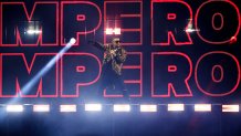 Entre los vítores de una sala con espacio para 20,000 personas y todas las entradas vendidas, Yankee hizo su entrada triunfal simulando bajar de un avión, engalanado con una chaqueta de lentejuelas doradas y gafas de sol, y se estrenó con el emblema de su retirada, “Campeón”.
