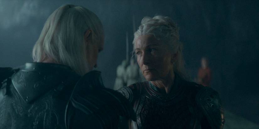 El episodio 9 de la temporada 1 vio a Rhaenys Targaryen escapar por poco de Desembarco del Rey a lomos de un dragón., interrumpiendo la coronación de Aegon. Por un momento, tiene a toda la facción Verde a su alcance, pero decide no matarlos y volar a Dragonstone. Este fue uno de los muchos Casa del Dragón cambios de libro, y uno que generó respuestas divisivas por parte del público. En el estreno de la temporada 2, Daemon se queja con Rhaenys por esto, sugiriendo que debería haber matado a Aegon y poner fin a la guerra mientras tenía la oportunidad.