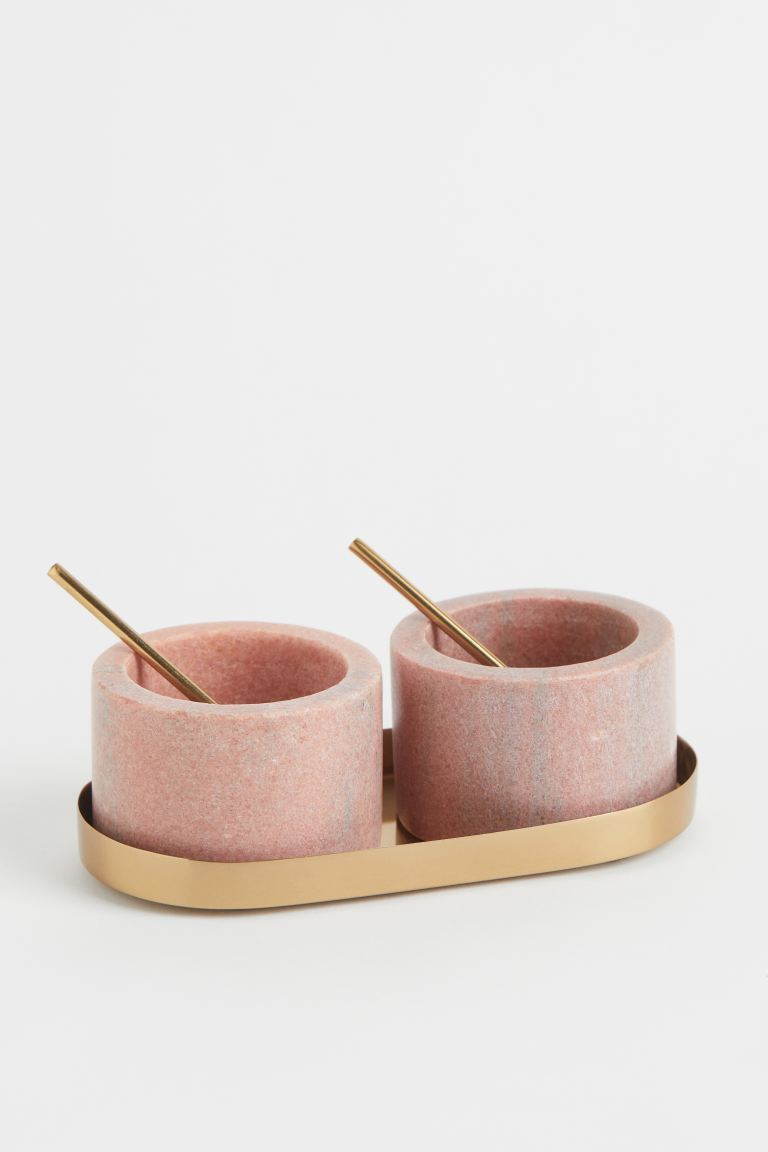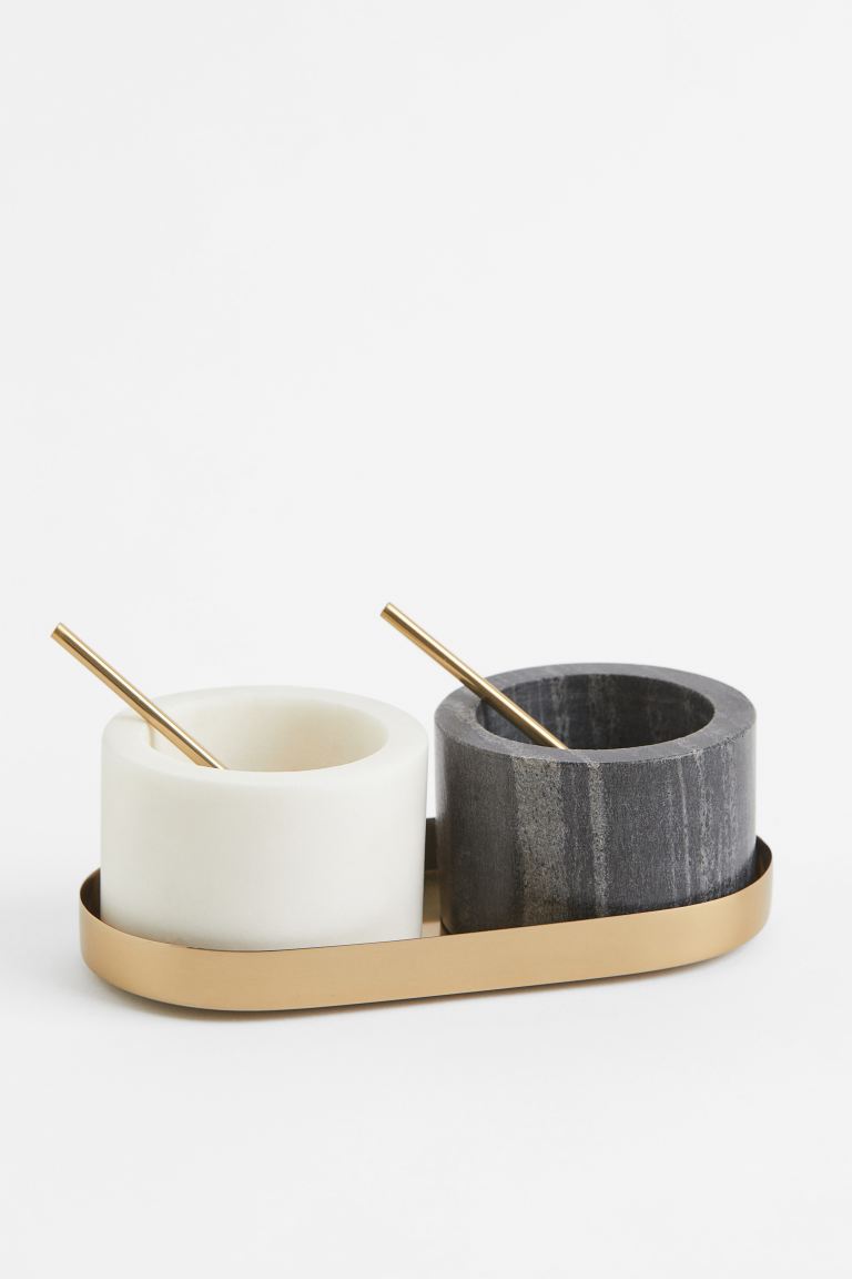 En todo el amplio surtido de productos para la casa que H&M vende, estos dos cuencos para usar de salero y pimentero son espectaculares. Con ellos llevamos a casa un diseño único que está acabado con los mejores materiales y un toque dorado que combinará con cualquier cocina. El éxito estará asegurado gracias a unas dos piezas increíbles.