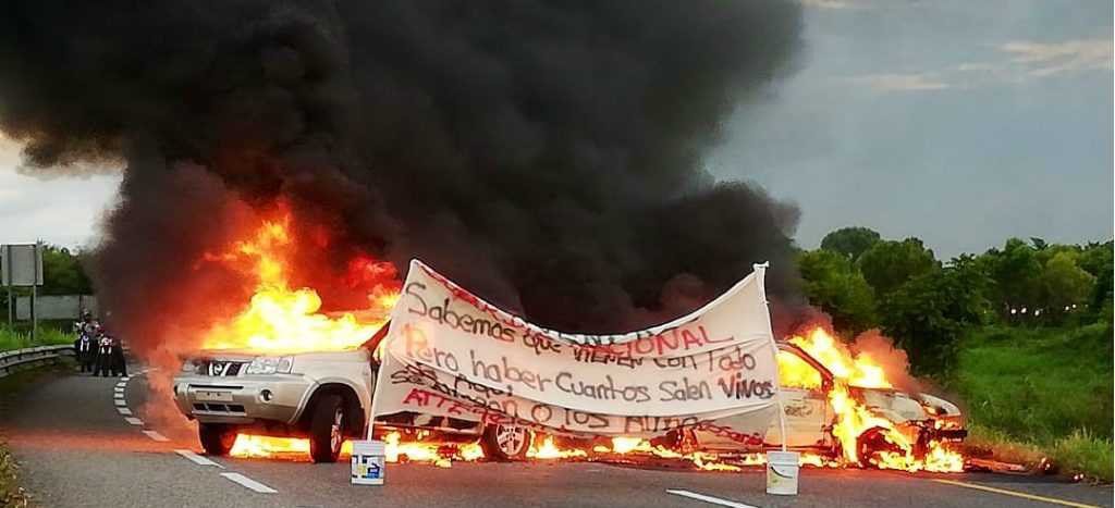 A un día que el presidente Andrés Manuel López Obrador dio arranque formal a la Guardia Nacional, con al menos cuatro vehículos incendiados se cerraron los accesos y salidas sobre la carretera federal Villahermosa-Teapa, donde se halló amarrada una manta sobre la vía con un mensaje dirigido a este nuevo cuerpo policiaco, lo cual causó la movilización policiaca en el lugar.