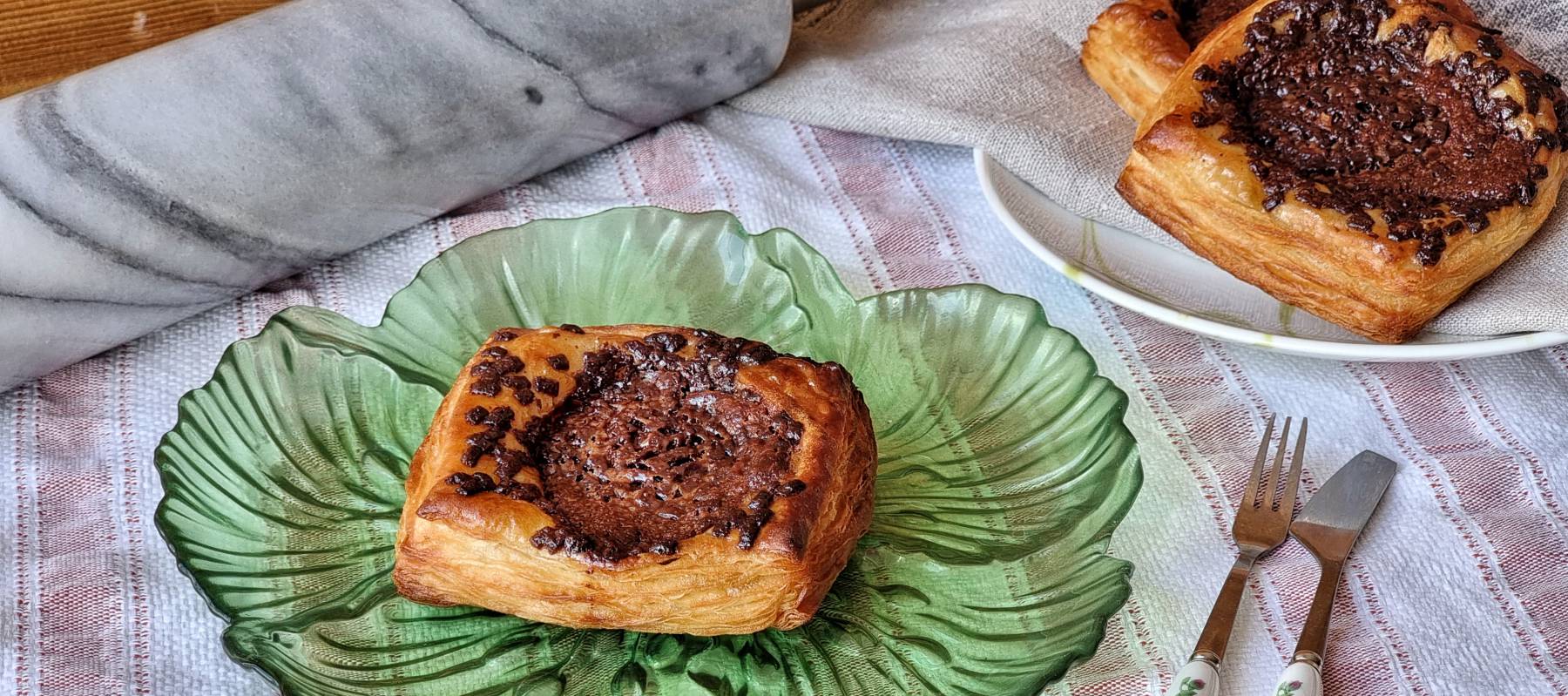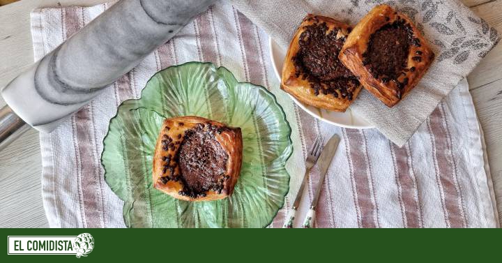 Dicho esto, el proceso es muy gratificante y nos permitirá preparar danesas al nivel de las altas pastelerías, donde las hay de frutas, de cremas y, mi favorita, la de buen chocolate: yo utilizo el Tulakalum de Valhrona, pero podéis usar el que más os guste. Una vez hecha la masa, también podéis convertirla en caracolas con pasas, o darle forma de rombos, con las puntas montadas. La masa congela fenomenal una vez fermentada, justo en el mismo momento en el que la pondríamos a hornear. Podéis congelarlas planas en la bandeja para que no se deformen y, una vez bien duras, pasarlas a una bolsa de congelación o cualquier envase que las aísle del frío y sus posibles quemaduras. ¿Todo este proceso te da mucha pereza o no te sientes capacitado? Hazlo con un buen hojaldre de mantequilla fresco: no será una danesa-danesa, pero estará rico igualmente.