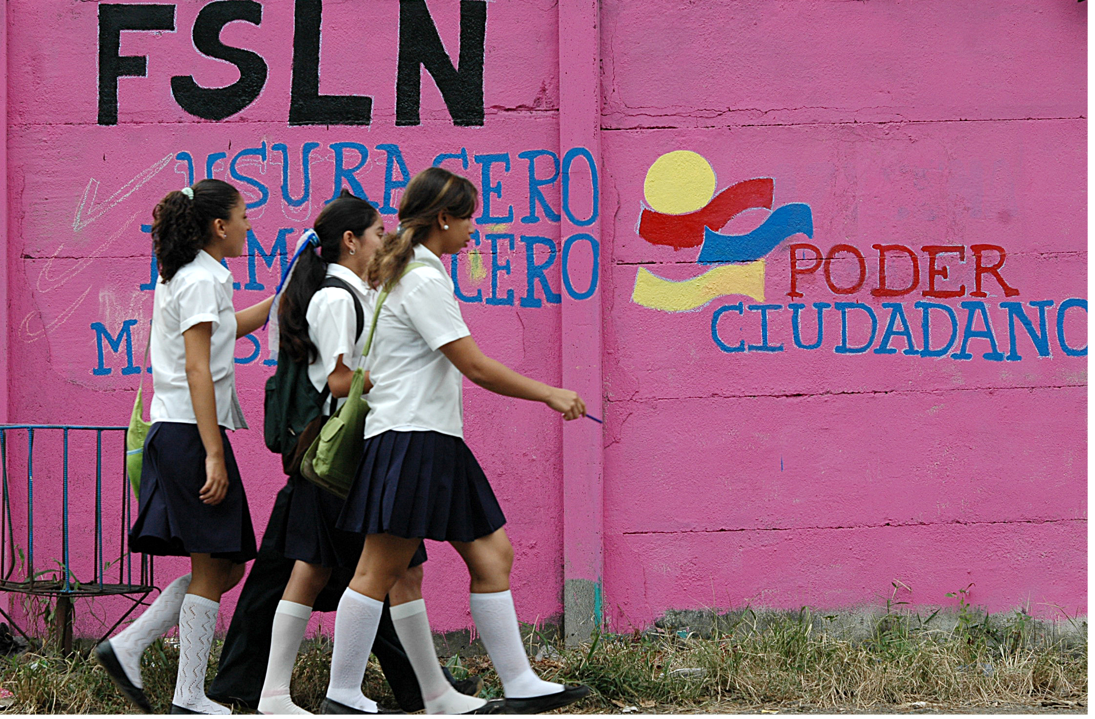El 17 de mayo en varios colegios del país se celebró el natalicio del general Augusto C. Sandino, en quien se inspiró el partido de gobierno. Ese día, en el colegio público que lleva su nombre en Ciudad Sandino, una ciudadela en el oeste de Managua, la directora Mayra Bermúdez en medio de una cancha de basquetbol gritaba frente a un micrófono “viva a Sandino”, mientras los estudiantes a su alrededor respondían “viva”. Con la mano derecha en alto, la profesora seguía “Viva el comandante Daniel Ortega”, y los alumnos contestaban “viva”. En el centro del lugar, con el bullicio alrededor, dos niños seguían sosteniendo la bandera del partido en el poder.