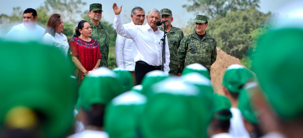 En este marco, donde destacó el respaldo de las Fuerzas Armadas a sus acciones de gobierno, explicó que se sembrarán un millón de hectáreas de árboles frutales y maderables como cedros, caoba, cacao, lo que significará dar trabajo a 400 mil campesinos, hijos de ejidatarios y pequeños propietarios.
