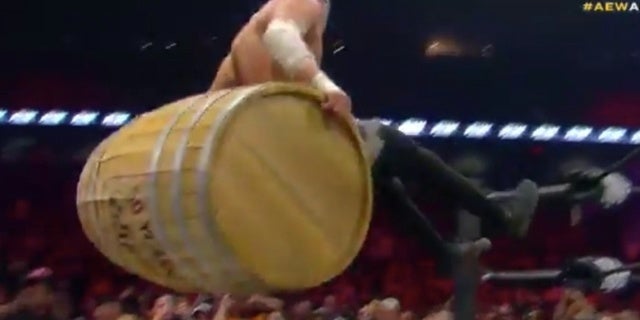Estamos acostumbrados a que los palos de kendo, las sillas y las mesas sean parte de la acción dentro del ring, pero rara vez se ven barriles.
