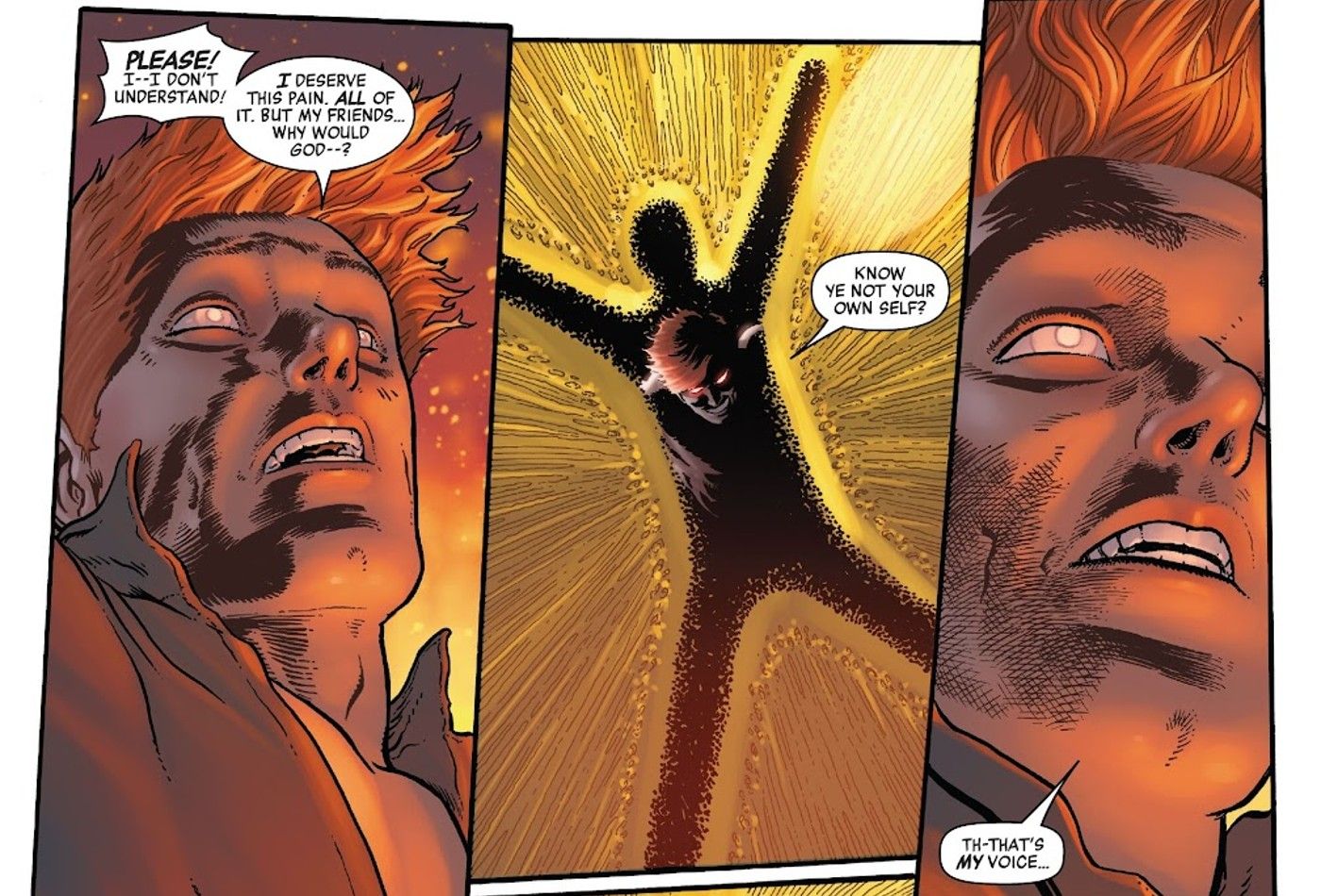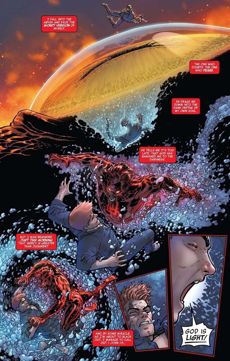 Este monstruo no se disipa hasta que Daredevil recita Juan 1:5 para sí mismo, trayendo su traje de la Mano de Dios al mundo real. Se da cuenta de cómo sus peores cualidades le hacen más daño que bien y, por ello, debe confiar en que “Dios es luz” sin permitir que sus pensamientos lo arrastren a la oscuridad. Es una lección que aprendió cuando obtuvo por primera vez el traje de la Mano de Dios, pero ahora es vital para él no olvidar esto nuevamente. Tener esta lección en mente ayuda Temerario alejar El que teme y resultará vital para evitar que los Siete Pecados Capitales lo arrastren al Infierno.