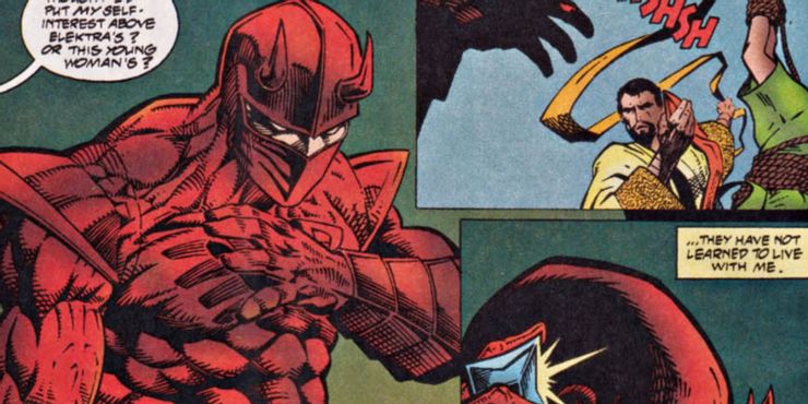 Si bien esta es la primera y única vez que los fanáticos pueden ver a Daredevil luciendo su mejor disfraz, no es la primera vez que Daredevil ha sido miembro de la Mano. de hecho, en Temerario #500, Daredevil se convirtió en el líder del malvado clan ninja. Después de llegar a la conclusión de que la antigua orden ninja es básicamente imparable, Daredevil decide asumir el cargo de líder para frenar el daño que el grupo de villanos inflige al mundo. Desafortunadamente, Daredevil solo obtiene un nuevo conjunto de túnicas al unirse a la Mano en la continuidad principal en lugar del increíble disfraz que recibe en la Y si…? historia