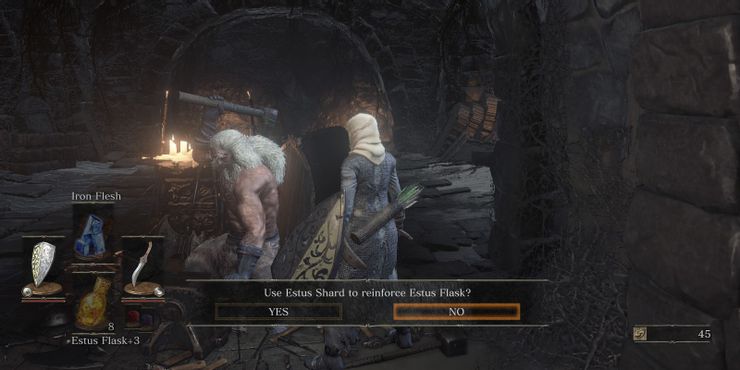 En Dark Souls 3 los jugadores pueden hacer que su curación de estus existente sea mucho más potente e incluso crear frascos adicionales. Esto proporcionará más recuperación al lidiar con mazmorras largas y jefes más difíciles. Sin embargo, beber estus en medio de la batalla puede ser bastante lento, por lo que es un poco peligroso si uno se vuelve demasiado indulgente.