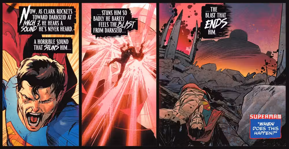Esa bomba es seguida inmediatamente por la muerte de Wonder Woman, dejando a Superman como el último miembro de la trinidad de DC en pie. Si bien eso pudo haber sido predecible, el repentino asesinato de Superman no lo es. Completando así la misión “Absoluta” de Darkseid de dominar por completo el Universo principal de DC: los héroes pierden, el Señor de Apokolips gana… y ni siquiera estuvo cerca.