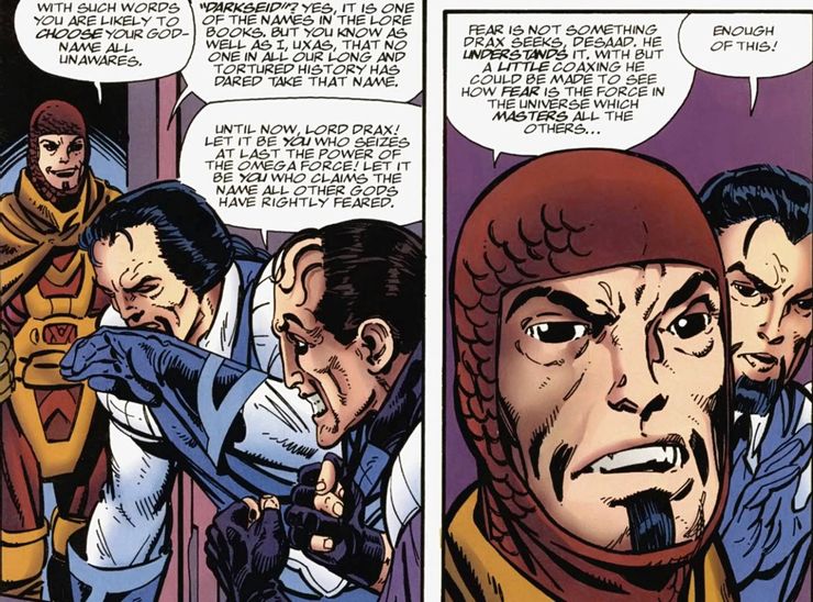 El breve vistazo a la vida pasada de Darkseid revela cómo sus poderes no son auténticamente representativos de él como villano. En cambio, provienen de su codicia y belicismo que lo han caracterizado durante mucho tiempo a lo largo de los cómics. Aún así, algunas cosas nunca cambian mientras planea junto a Drax y Desaad. Como siguen siendo los subordinados serviles que los lectores saben que son, Darkseid no ha perdido toda su autoridad en el flashback. Similar a los lectores, Darkseid probablemente también piense que se veía extraño como Uxas, ya que anteriormente carecía del poder con el que se identifica.