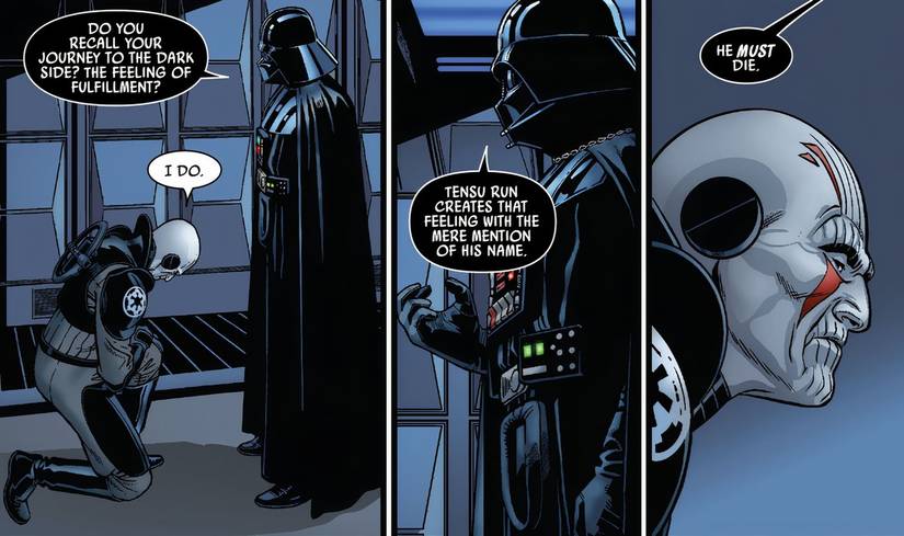 Cuando Darth Vader le recalca al Gran Inquisidor la importancia de encontrar y matar a Tensu Run, relaciona la inspiración que sienten las personas al escuchar el nombre del joven Jedi con la seducción del lado oscuro. Vader le pregunta al Gran Inquisidor si recuerda cómo el lado oscuro lo hizo sentir completo cuando sucumbió por primera vez a su influencia, y cuando el Gran Inquisidor dice que sí, Darth Vader le dice que esa es exactamente la misma sensación que el nombre de Tensu Run está inspirando en toda la galaxia.