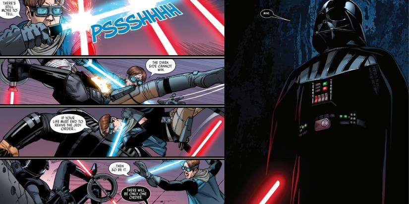 Como se ve en el canónico de Marvel. Star Wars: Inquisidores #4 De Rodney Barnes y Ramon Rosanas, Darth Vader se ha cansado de los fracasos recurrentes de sus Inquisidores para capturar o matar a Tensu Ren, un Caballero Jedi que busca reconstruir la Orden Jedi y que también está dispuesto a enfrentarse directamente a sus cazadores. Por ello, este nuevo y último número de Inquisidores ve a Vader reuniendo al Gran Inquisidor, al Quinto Hermano y a las Hermanas Séptima y Novena para enfrentar juntos a Tensu Run. Sin embargo, el propio Darth Vader también llega al lugar para asegurar que su voluntad finalmente se cumpla: