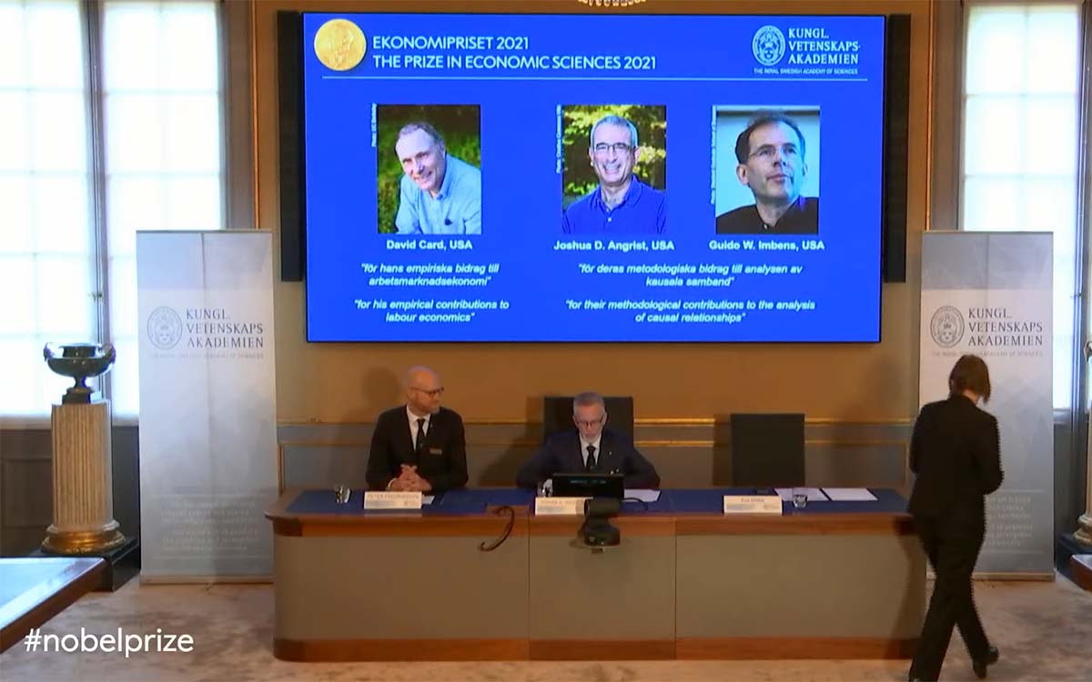 Real Academia Sueca de Ciencias señaló que David Card fue galardonado “por sus contribuciones empíricas a la economía laboral” en tanto que Joshua D. Angrist y Guido W. Imbens fueron premiados “por sus contribuciones metodológicas al análisis de las relaciones causales”.