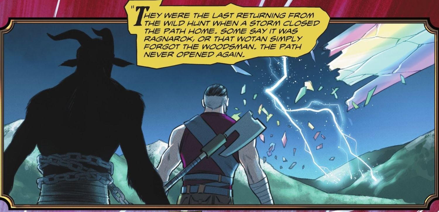 Santa fue una vez un artesano mítico que cabalgó junto a los dioses nórdicos durante la Caza Salvaje. Sin embargo, Santa se quedó accidentalmente en la Tierra después de que el Bifröst fuera destruido durante el Ragnarok. Al no poder regresar a casa, Santa se convirtió en la leyenda de los regalos que trabajó junto a su compañero, el Krampus más travieso y aterrador.