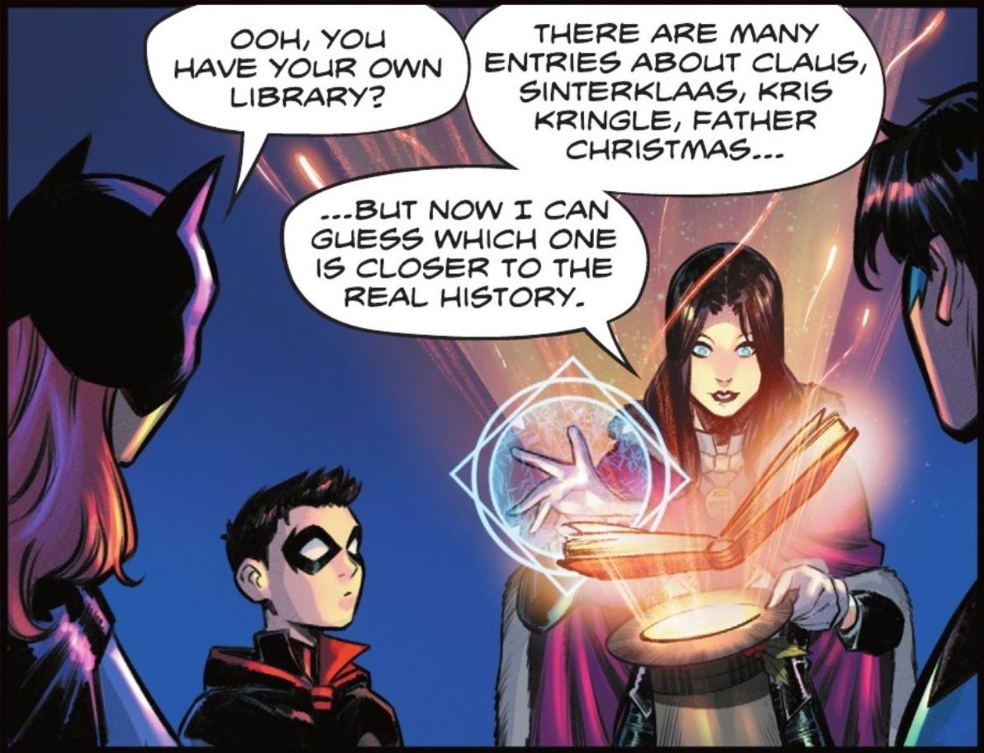 En Batman/Papá Noel: Caballero Silencioso #1 de Jeff Parker y Michele Bandini, Batman, Robin y Zatanna son salvados por Santa Claus de un grupo de monstruos conocidos como Draug. Zatanna saca un libro de sus archivos para explicar el origen secreto detrás de la versión de Papá Noel del Universo DC.