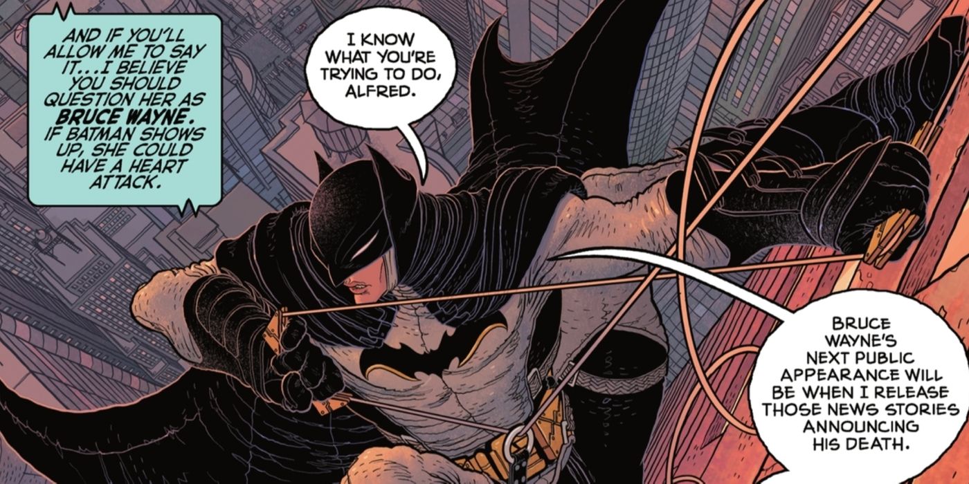 - Batman planea declararse muerto para dedicarse por completo a luchar contra el crimen y proteger a Gotham, a pesar de las protestas de Alfred.