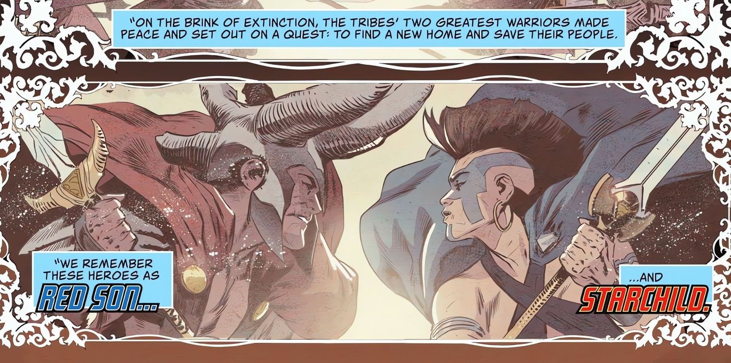 Los fanáticos incondicionales de Superman pueden recordar esos nombres, ya que ambos han jugado un papel en el mito del héroe. Red Son era infamemente el apodo de la contraparte de Superman criada en Rusia en Superman: Hijo Rojo. ‘Star Child’, por otro lado, es más o menos lo que significa en inglés el nombre kryptoniano de Clark, Kal-El. Kal-El, el Niño de las Estrellas, fue también el nombre del primer kryptoniano nacido en la Casa de El. Ambos nombres tienen una historia en la historia de Superman y ahora se han actualizado para convertirse en los nombres de leyendas kryptonianas. Dado que Osul-Ra y Otho-Ra carecen de un nombre de superhéroe adecuado, parece que acaban de presentarse los perfectos.