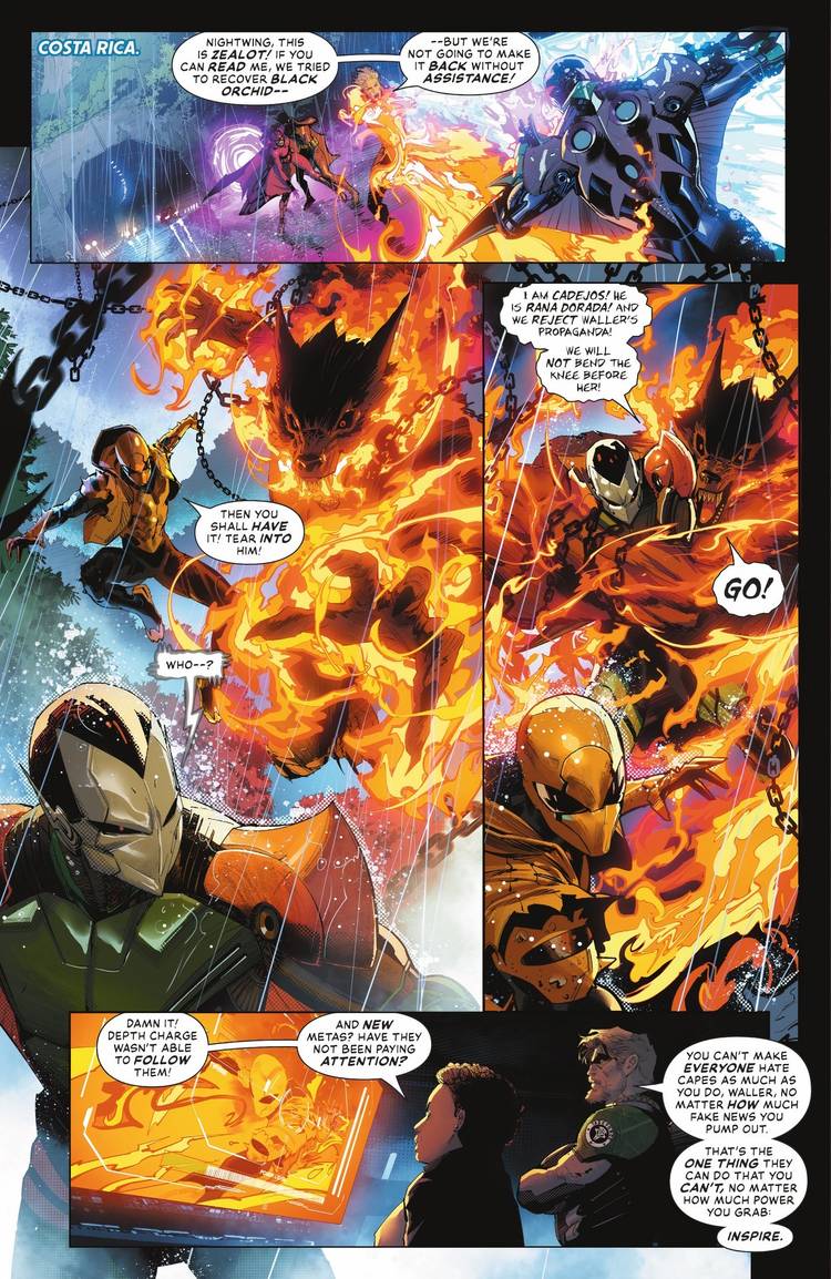 Uno de estos nuevos héroes parece ser la propia versión de Spider-Man de DC, ya que Rana Dorada salta a la escena y ayuda a los héroes a luchar contra uno de los muchos robots Amazo de Amanda Waller.Actualmente se sabe muy poco sobre Rana Dorada, pero no hay duda de que los fanáticos verán mucho más de él después de su primer debut real en este número.