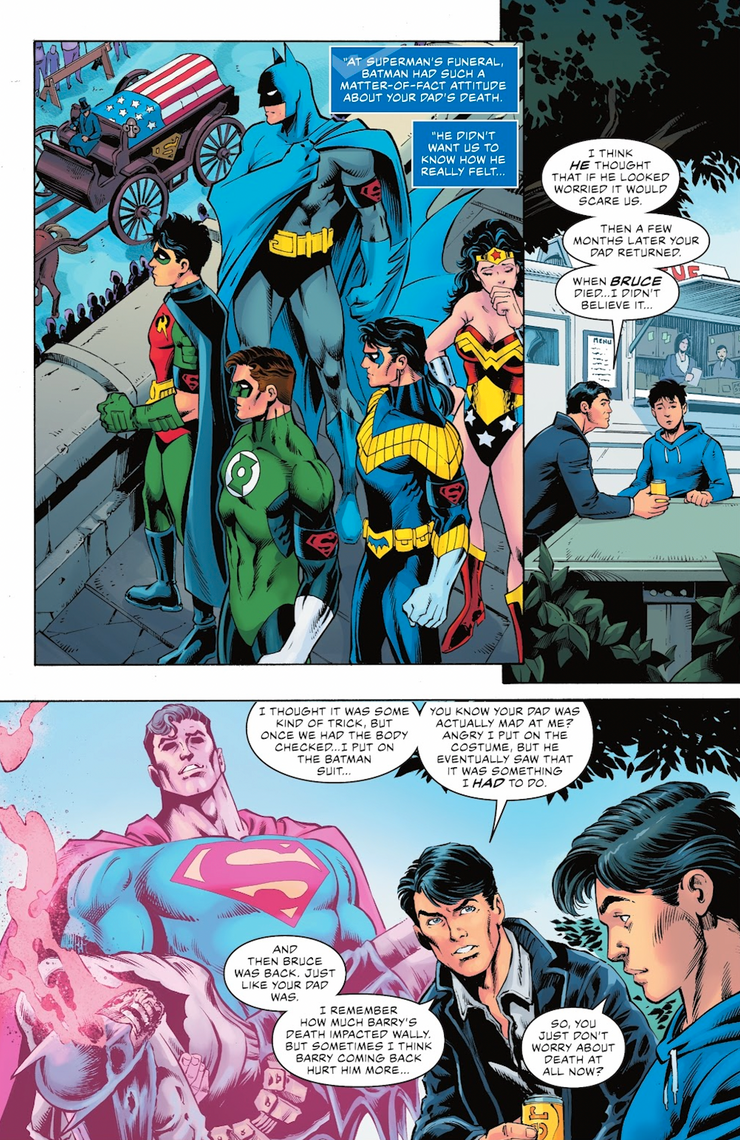 Vivo una vez más, Barry comenzó a enfocarse en Wally en múltiples historias en los cómics (y especialmente fuera de los cómics; Allen es la estrella tanto de la Destello programa de televisión de 2014 y la serie de películas de DCEU). Liga de la Justicia: Camino a la Crisis Oscura #1, escrito por Joshua Williamson y Dan Jurgens con arte de Norm Rapmund, admite tanto después de la muerte de la liga de la justicia evento. Toda la liga está desaparecida y se presume muerta, pero muchos héroes han estado muertos antes, y Nightwing discute el concepto con Jonathan Kent. “Recuerdo cuánto impactó a Wally la muerte de Barry, pero a veces creo que el regreso de Barry lo lastimó más”. dice Nightwing, y no se equivoca.