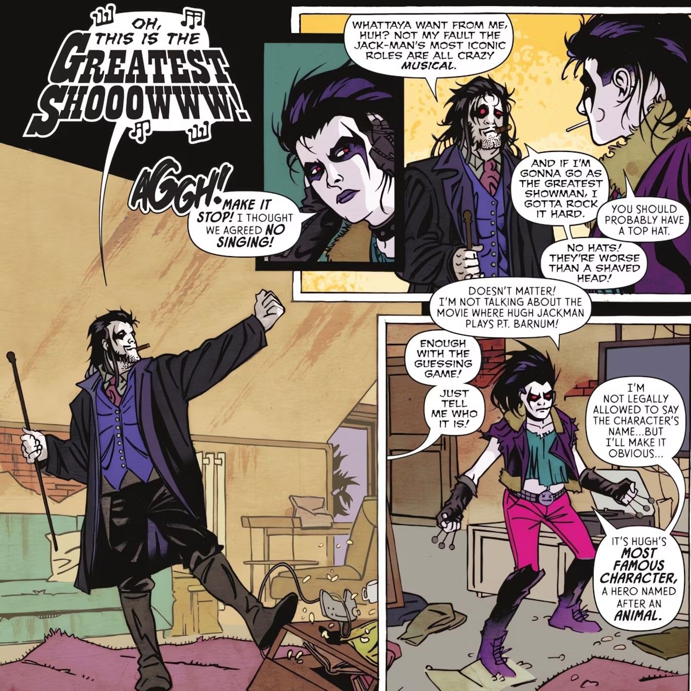 “/> Esto lleva a Lobo a disfrazarse de una letanía de personajes de Hugh Jackman, pero nunca del personaje icónico de X-Men. Finalmente, agotada por su padre, Crush sugiere que se disfrace como la otro superhéroe con el que Lobo tiene un parecido sorprendente: Aquaman.
