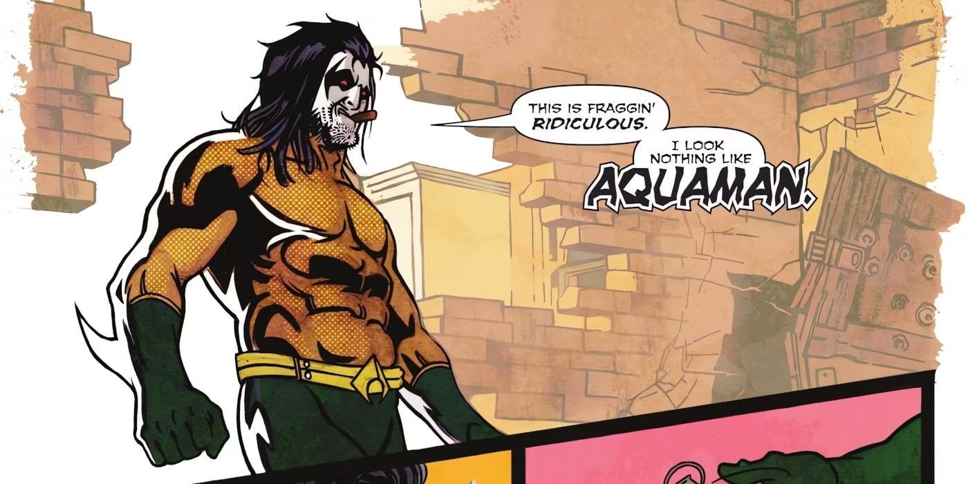 - En cambio, Crush sugiere que Lobo se disfrace como Aquaman, quien comparte un parecido sorprendente con Lobo y es interpretado por Jason Momoa, un fancast popular de Lobo.