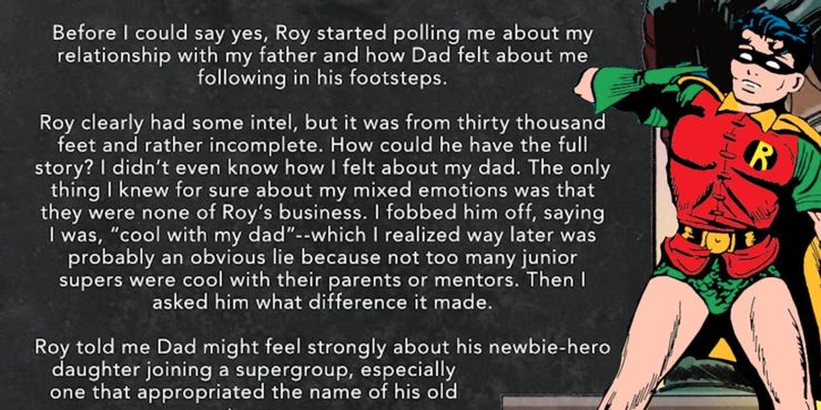 Este problema en particular tiene que ver con la tensión emocional que conlleva ser un héroe con un súper padre. Destaca cómo las tensiones iniciales de la relación entre padres e hijos se pueden duplicar cuando se agregan poderes a la mezcla, mucho menos una diferencia de opiniones, cosmovisión y estilo de vida. Este problema reveló cuán lejos se pudo haber extendido el trauma que Nightwing recibió por ser el pupilo de Batman. Sin embargo, todo este trauma podría haberse evitado si no hubiera sido un compañero, o al menos no durante tanto tiempo. Nightwing no fue asesinado y devuelto de la misma manera que Bucky. Comenzó como Robin y finalmente se separó, convirtiéndose en un héroe por derecho propio, pero no sin algunos complejos. Lo mismo ocurre con Roy, quien, como Nightwing, busca la validación de sus relaciones románticas.