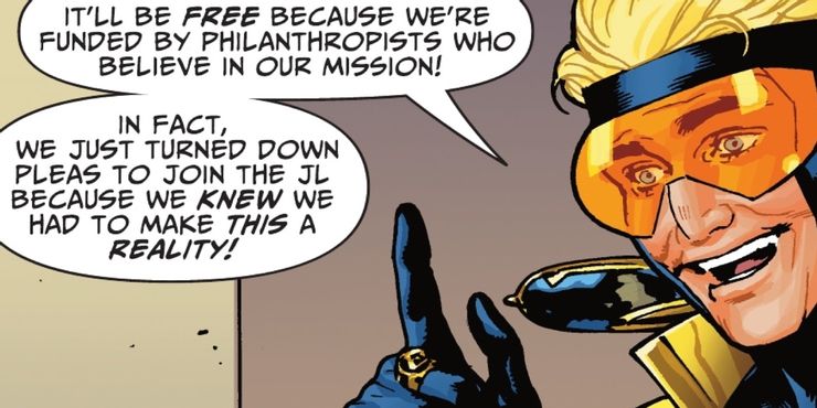 El reportero que se refirió a Blue Beetle y Booster Gold como “héroes a sueldo” dio en el clavo exactamente lo que eran. Esta idea no es nada nuevo: Marvel combinó a Luke Cage y Iron Fist utilizando esta idea y creó el cómic dorado con sus Héroes de alquiler cómic hace décadas. Ahora DC ha llevado la idea un paso más allá: no solo alguien puede contratar Blue Beetle y Booster Gold, sino que puede hacerlo de forma gratuita, o al menos a una tarifa reducida. Otro periodista preguntó si esta empresa era de mal gusto al sacar provecho de los problemas de otras personas y subvencionar un negocio de este tipo es la solución perfecta para esto.