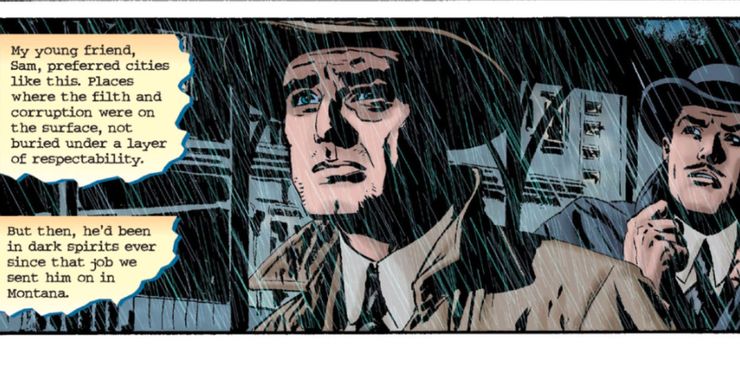 Entrando entre “temporadas” de la serie aclamada por la crítica de Brubaker y Phillips Durmienteel equipo creativo riff hábilmente en el clásico duro El halcón maltés. En la historia, Jim Wright tiene un compañero al que llama “Sam”, que tiene más de un parecido pasajero con Halcón autor Dashiell Hammett. El Hammett de la vida real (cuyo nombre de pila era, de hecho, “Samuel”) trabajó para los Pinkerton entre 1915 y 1922, basándose en gran medida en sus experiencias cuando se embarcó en su carrera como escritor poco después. Con obras como El halcón maltésa menudo se considera que Hammett se encuentra entre los “padres fundadores” del movimiento literario y cinematográfico que luego se clasificaría como negro. Brubaker y Phillips usan su historia aquí para rendir homenaje a Hammett, encapsulando perfectamente el diálogo duro y el romance condenado que tiene su origen en la ficción detectivesca del autor.