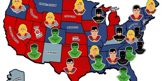 El gráfico completo de los estados y sus universos y héroes cómicos favoritos se puede ver aquí.