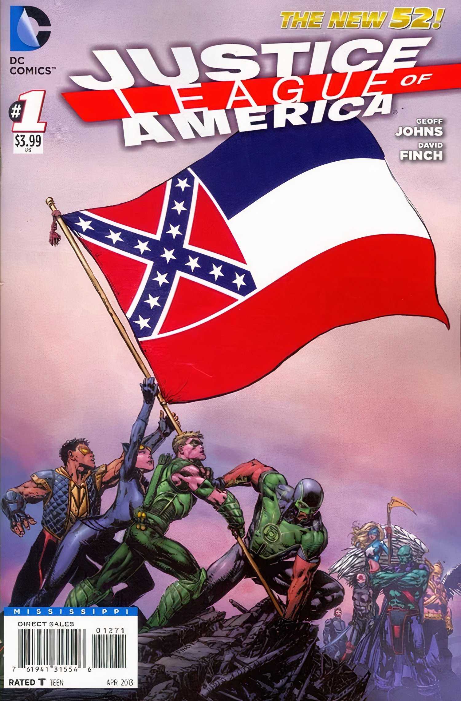 Sin embargo, el problema es que la serie usó la bandera de cada estado, incluida la de Missisippi que, en ese momento, presentaba la bandera de batalla confederada en la esquina. Mientras que Mississippi finalmente retiró esta bandera, Es extraño ver la Liga de la Justicia en cualquier lugar cercano a un símbolo tan controvertido.