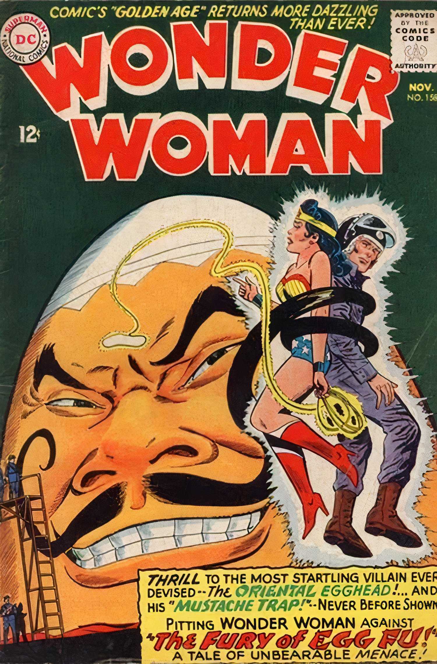 Wonder Woman tiene muchos villanos excelentes e interesantes en la galería de sus pícaros, pero uno es un producto de su tiempo que es difícil imaginar a la moderna Diana que lucha contra él. Wonder Woman #158 La cubierta de Ross Andru y Mike Esposito muestra a Wonder Woman y Steve Trevor en los controles de una poderosa supercomputadora viviente conocida como Egg Fu. Egg Fu es una caricatura increíblemente racista que utiliza muchos de los tropos ofensivos de ‘Peligro amarillo’ Eso no era exactamente raro en el pasado.