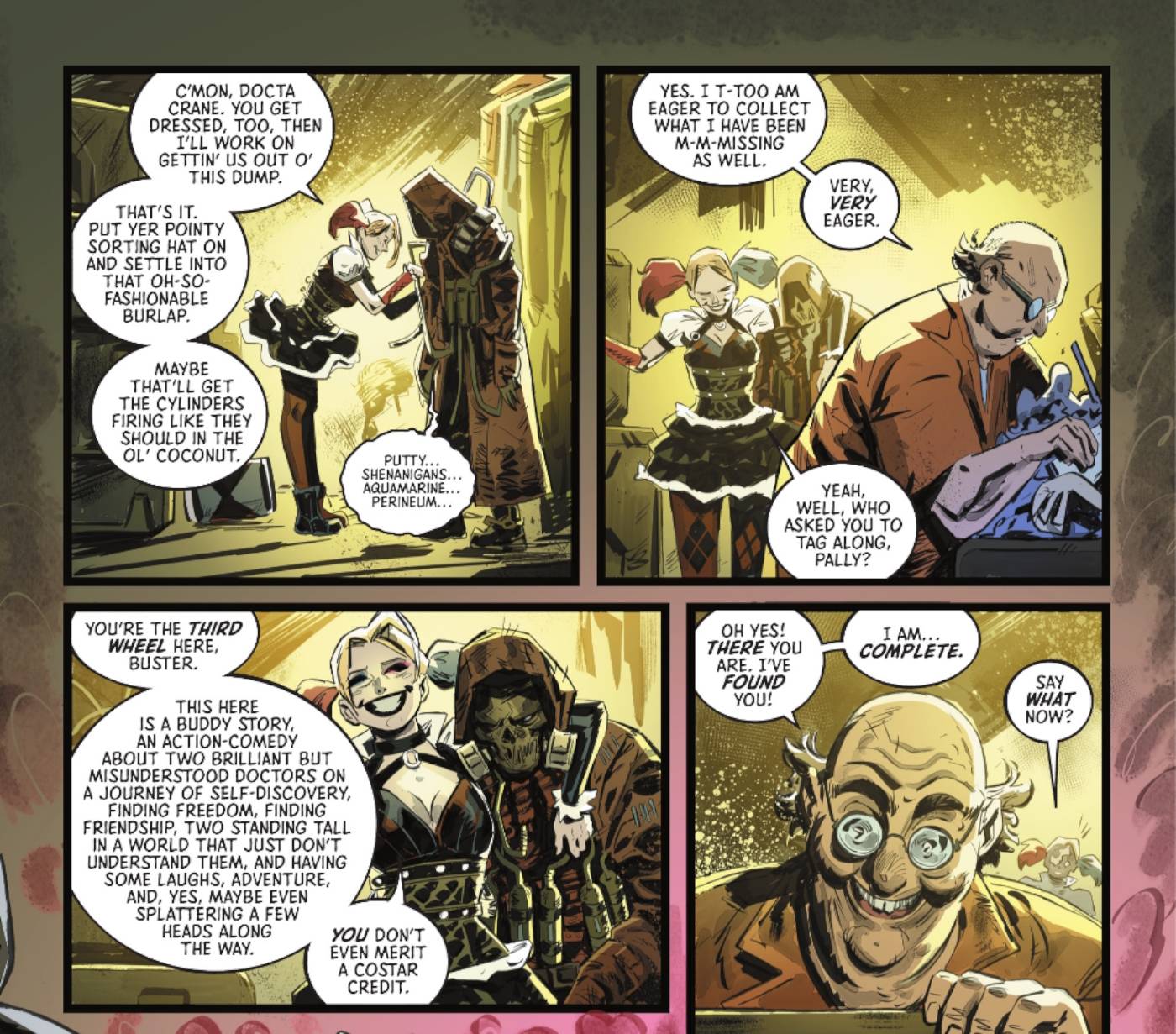 Como ven los lectores en Escuadrón Suicida: Mata a Arkham Asylum #3, Scarecrow ya no es el villano que solía ser. Parece completamente incapaz de cuidar de sí mismo, necesita que Harley Quinn lo vista con su viejo equipo, y continuamente balbucea frases aparentemente sin relación. Este es un destino bastante oscuro para Scarecrow y muestra cómo el arkham La versión de Batman es mucho más brutal de lo habitual. Incluso Arkham La versión de Riddler admitió que tuvo pesadillas con Batman y estaba traumatizado por cómo fue brutalizado por él. Parece que Espantapájaros se llevó la peor parte de esto, ya que Batman literalmente le rompió la cabeza.