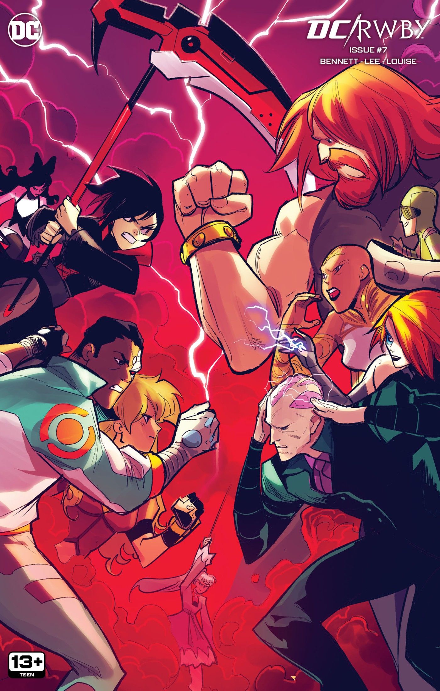 DC/RWBY #7, escrito por Marguerite Bennett, con arte de Soo Lee, color de Marissa Louise y letras de Morgan Martinez, ve el conflicto entre el nuevo Grimm Batman y un Nuckelavee-Joker llega a un punto crítico. La portada principal de Megan Hetrick y la portada variante de Mirka Andolfo se pueden ver a continuación.