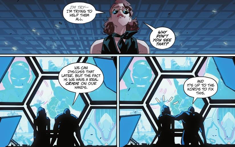 Victoria Kord sugiere que es ella misma, no Wonder Woman, la mujer más poderosa del planeta. en Escarabajo azul #9 de Josh Trujillo y Adrián Gutiérrez. Al recordar el día en que se convirtió en directora ejecutiva de Kord Industries, Victoria recuerda haberse dicho a sí misma: “A partir de este día, ya no eres sólo la mujer más inteligente de la Tierra… ahora eres la más poderosa”.